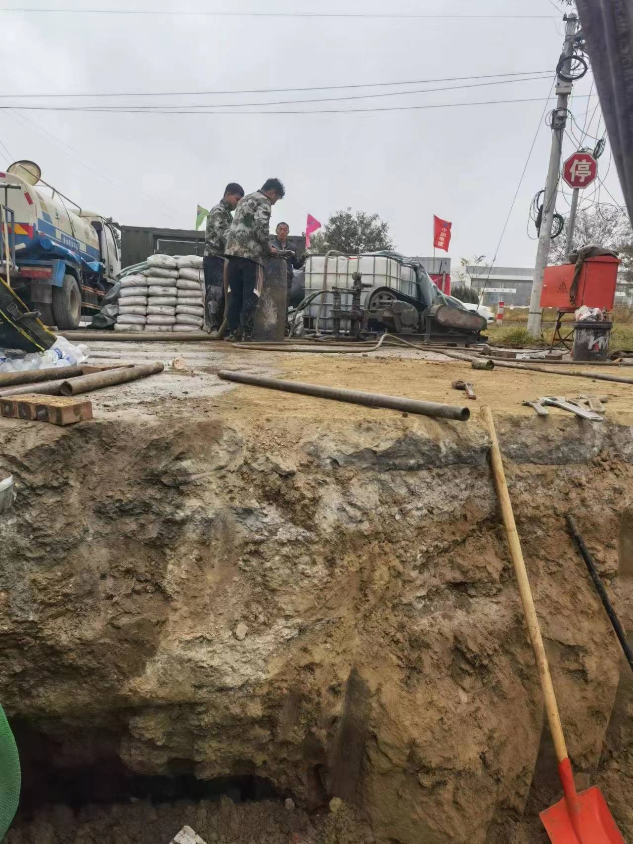 上蔡基坑隧道止水帷幕桩底钻孔高压注浆